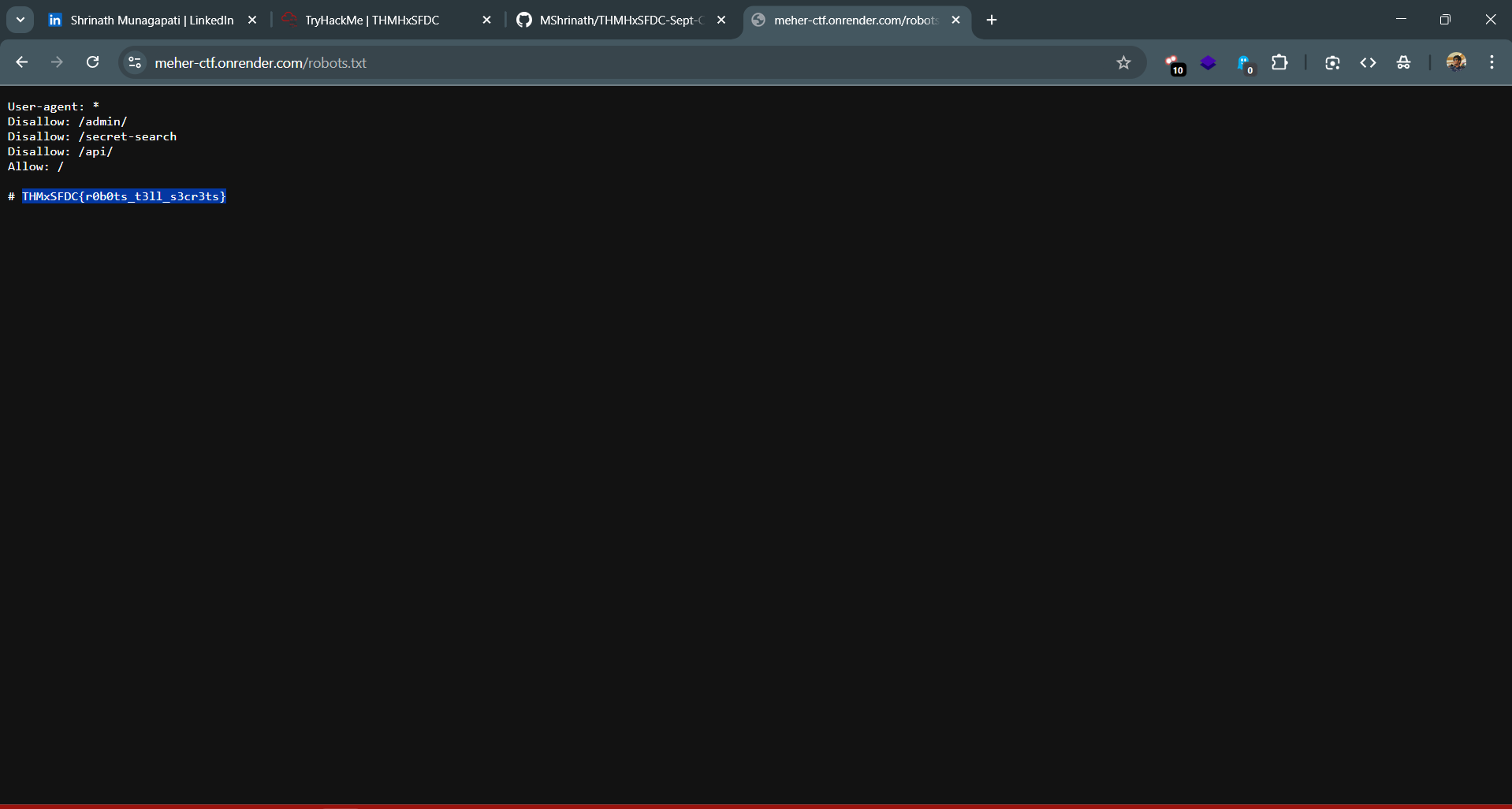 THMxSFDC{r0b0ts_t3ll_s3cr3ts}