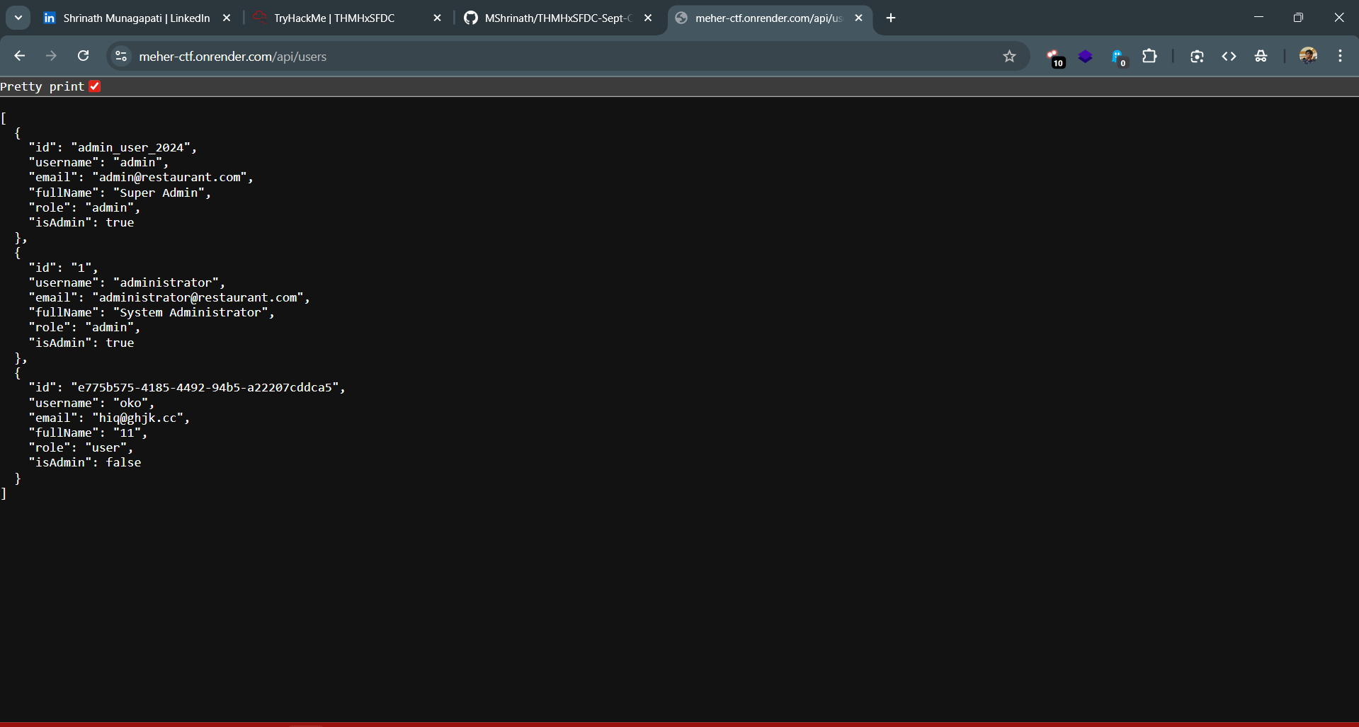 Among the returned user data there was the flag, completing the final piece of the Chef’s secret book.