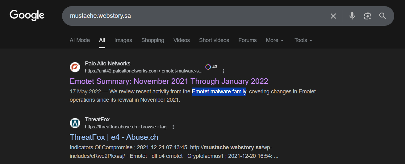 Found threat intel reports and documentaries linking this domain to Emotet malware campaigns. Concluded that the activity in the PCAP was related to the Emotet threat actor.
